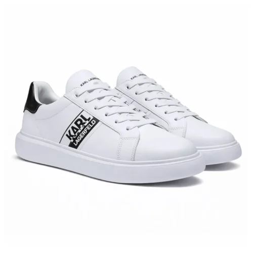 KARL LAGERFELD PARIS Logo Leather Low-Top Sneakers Men – White