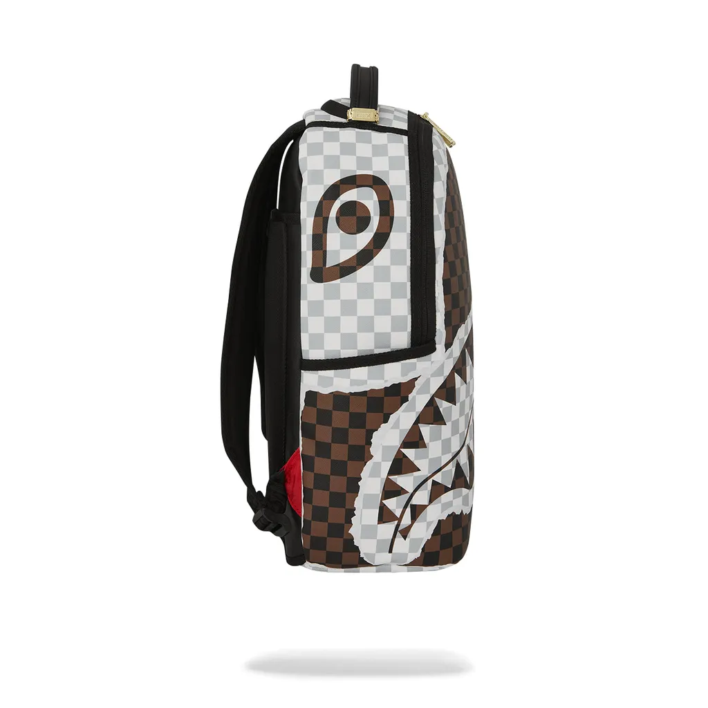 The Sprayground Cream and Brown Tear Check Backpack offers a sophisticated, deconstructed take on luxury aesthetics. Featuring a neutral cream and chocolate brown checkerboard pattern, the design is interrupted by a bold “tear” graphic that reveals a glimpse of high-contrast visual texture beneath. This backpack balances an elegant color palette with the brand’s signature rebellious edge, making it a versatile choice for those who want a premium look that still stands out in a crowd.