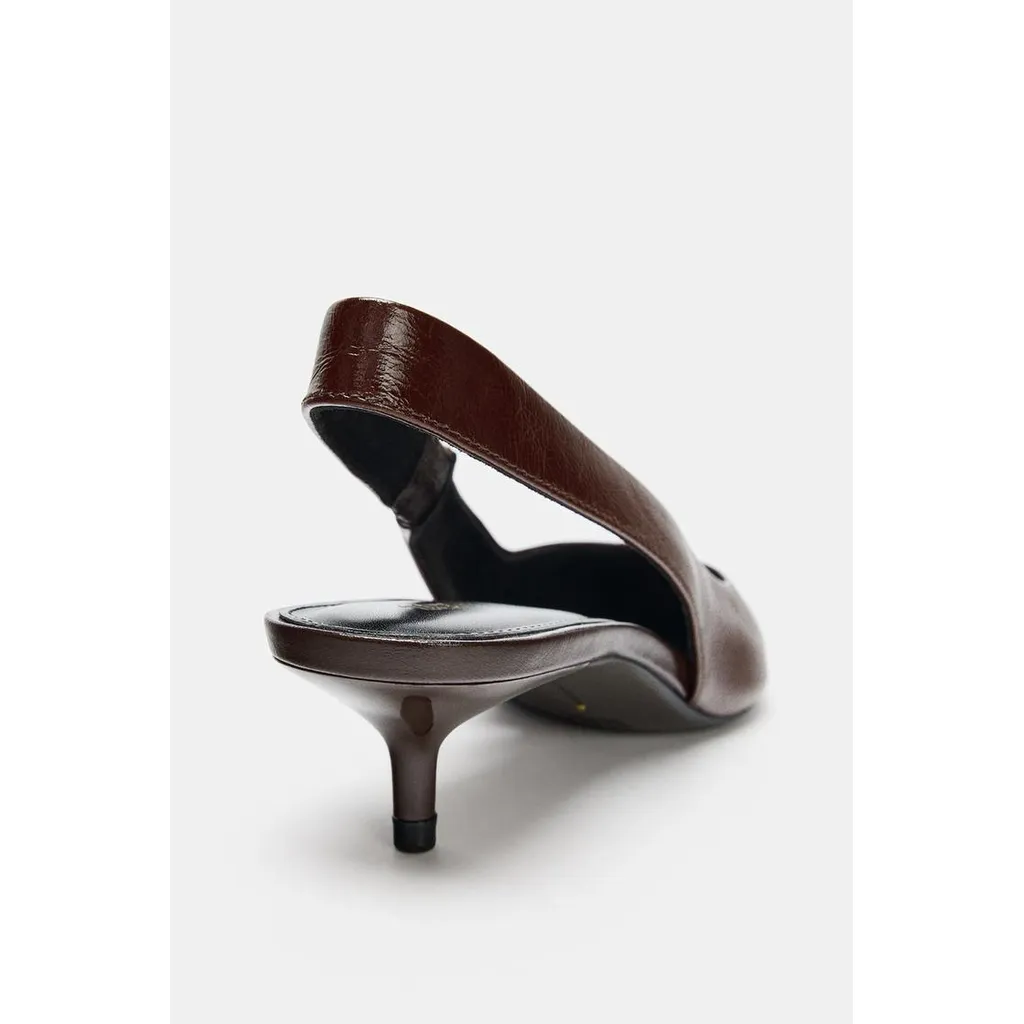 ZARA Split Suede Slingback Shoes With Buckle – Maroon