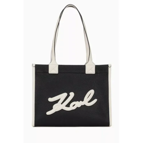 K/Skuare Tote Bag in Grained Faux Leather – Black/Creme