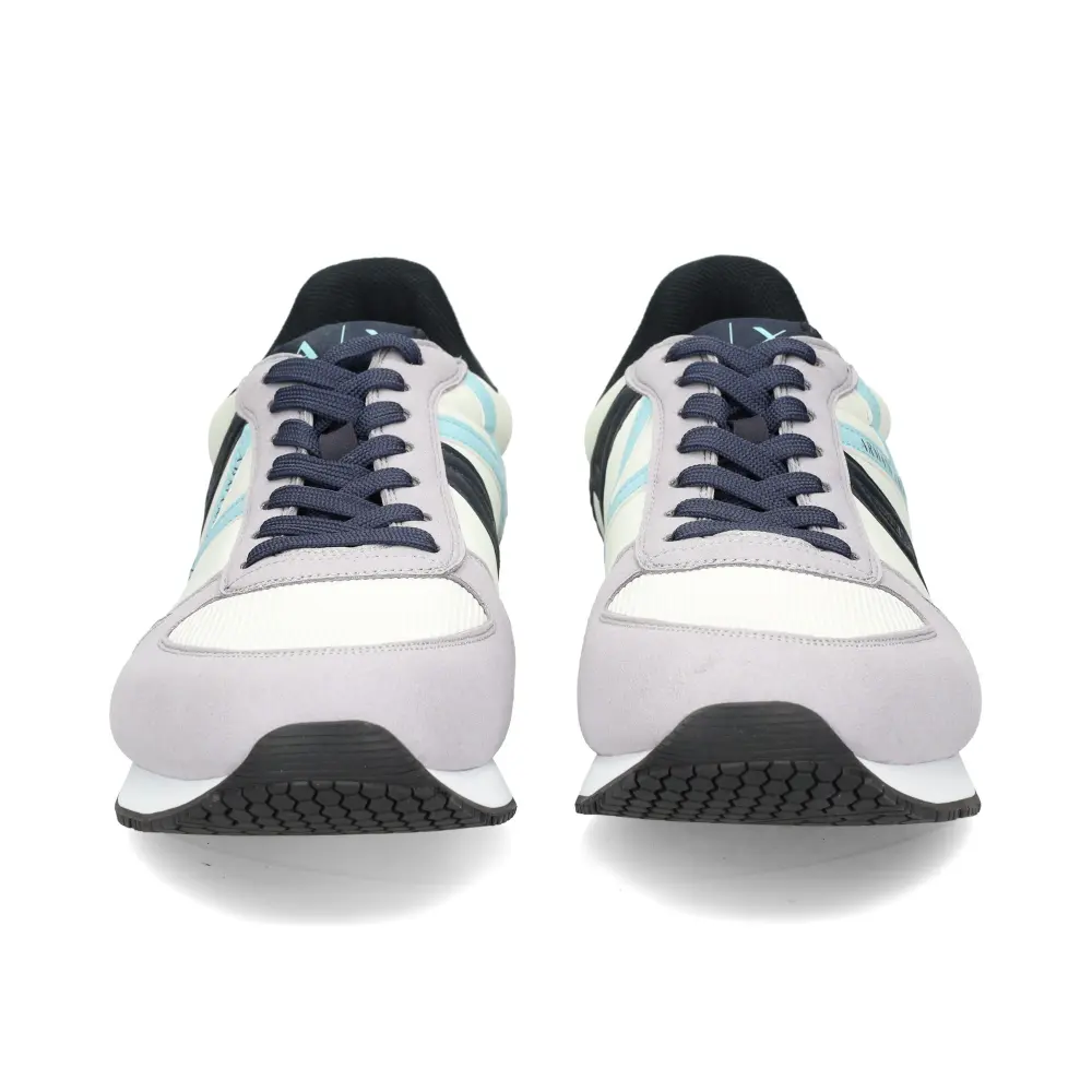 Blend contemporary style with everyday comfort in the Armani Exchange Arctic Runner Sneaker. This versatile low-top features a premium mix of light gray suede, off-white mesh, and black leather overlays, accentuated by cool blue “A” branding and embroidered “Armani Exchange” text. The perforated suede toe box ensures breathability, while navy blue laces and a cushioned mesh collar cradle your foot for all-day support. Underfoot, a dual-density EVA midsole provides responsive cushioning and shock absorption, paired with a durable rubber outsole for reliable traction. Whether you’re hitting city streets or casual outings, this sneaker’s sculpted silhouette and refined materials make it a standout addition to any wardrobe.