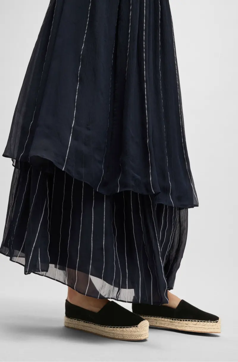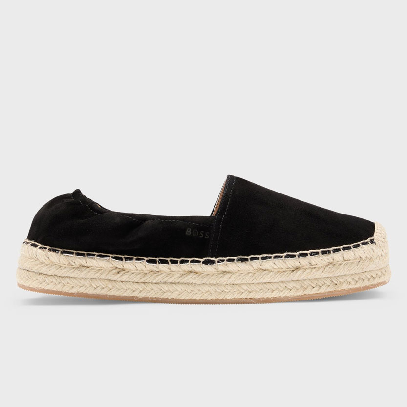 Set on traditional jute, these BOSS Womenswear espadrilles deliver a clean, casual finish to summer looks. Refined suede uppers. Stretchy heel for a secure fit. We continuously look for more responsible ways to produce and finish our products. A minimum of 60% of the leather used to make this product has been sourced from certified tanneries.