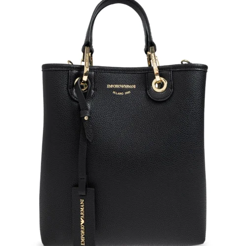 This Emporio Armani Medium Grain-Leather Tote Bag is a sophisticated and versatile accessory designed for the modern professional. Crafted from premium grained leather, it features a structured silhouette with a spacious interior that includes a matching internal zip pouch for organization. The bag offers dual carrying options: elegant top handles for a classic look or a bold, logo-patterned detachable webbing strap for a contemporary, hands-free style. Finished with subtle gold-tone hardware and signature branding, it seamlessly blends timeless luxury with everyday functionality.
