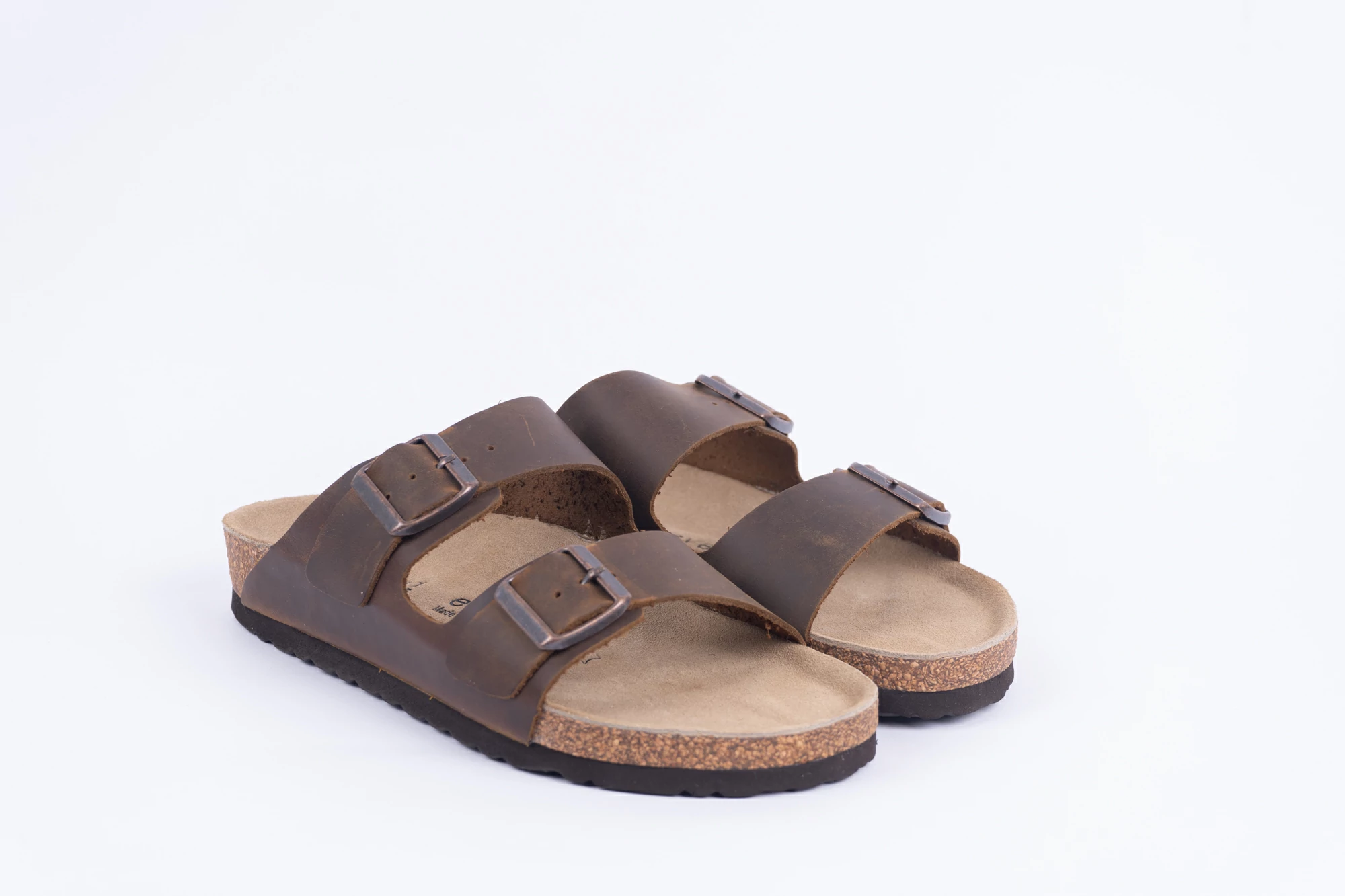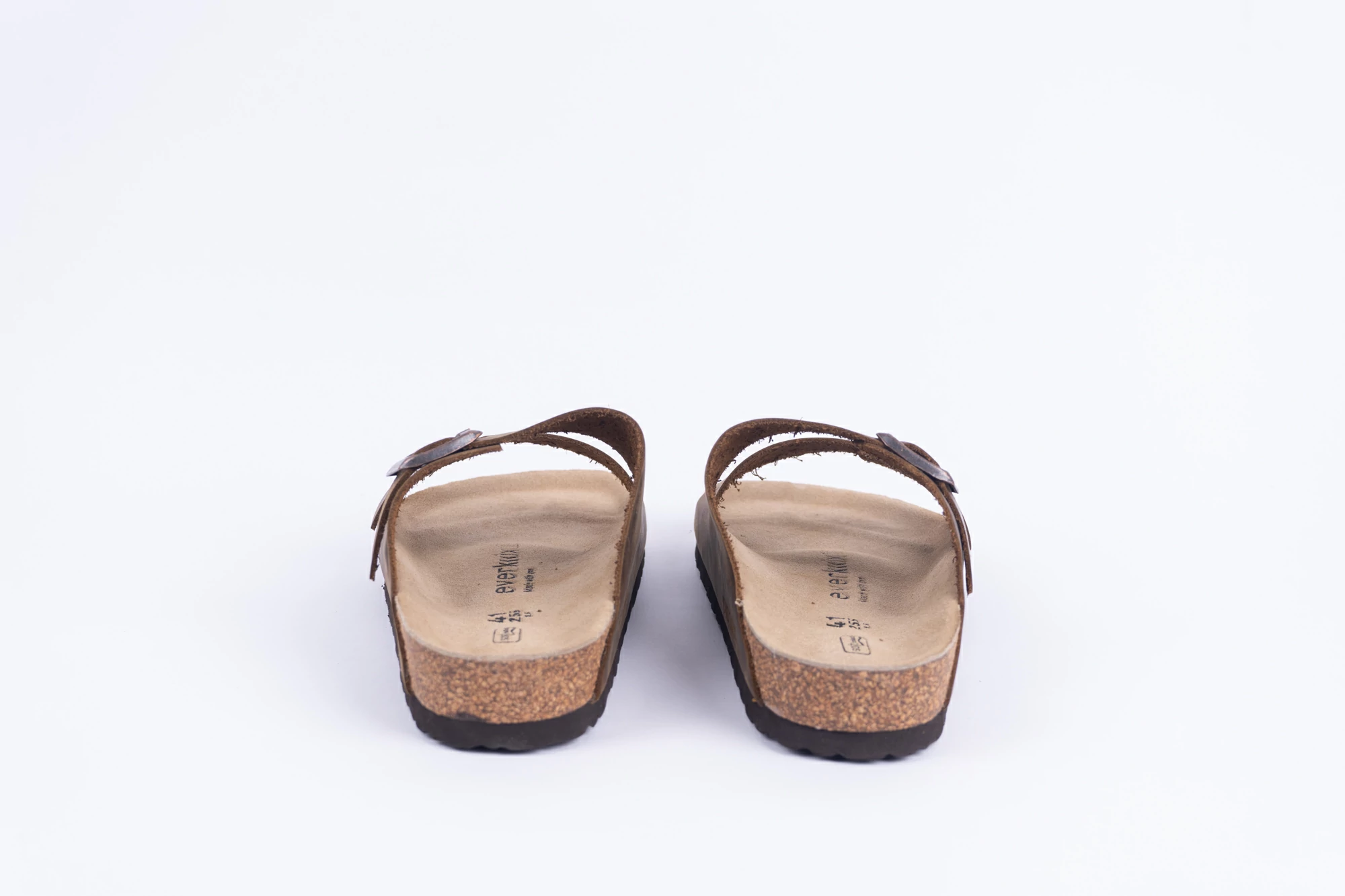 Everkix Arizona Soft Footbed Double. Designed with premium-quality genuine leather, these sandals provide durability, breathability, and a refined look. The dual-strap design with adjustable metal buckles offers a secure and customizable fit, while the soft suede insole ensures all-day comfort. The lightweight cork footbed and anti-slip rubber sole provide excellent grip and support, making them perfect for everyday wear.