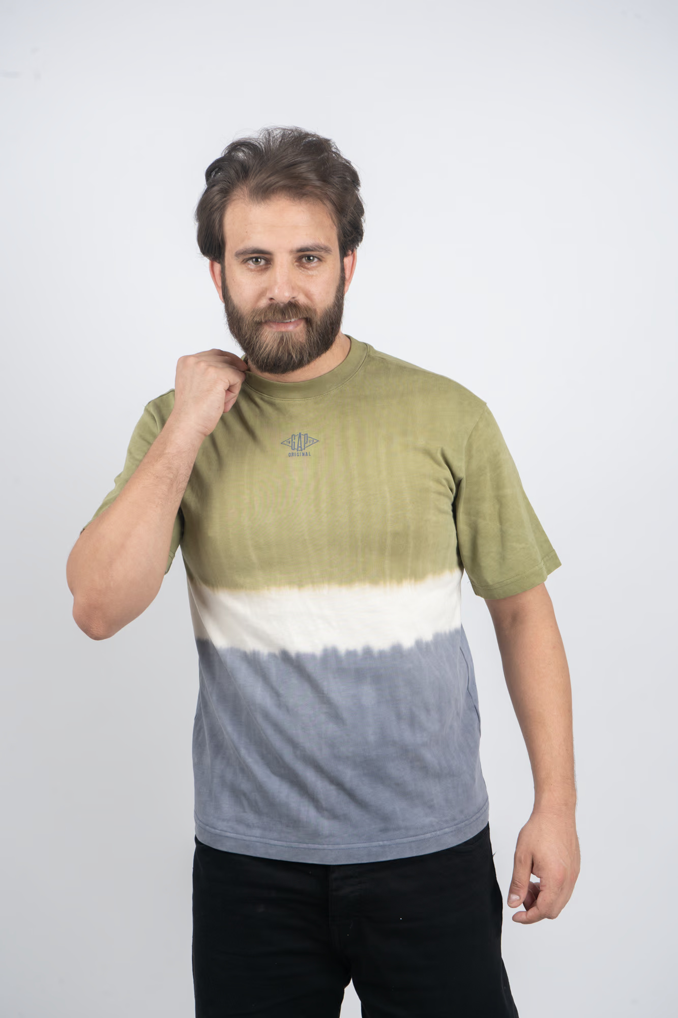 Channel easygoing, weekend-ready style with the Men’s Olive & Grey Gradient Tie-Dye Original Tee. Featuring a seamless three-tone fade from earthy olive to crisp white and smoky grey, this shirt offers a modern twist on the timeless tie-dye trend. A subtle chest logo adds a refined touch that keeps the look grounded and versatile.