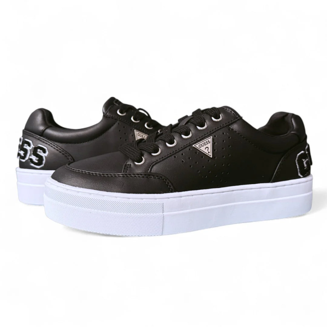 - Create a chic and fresh look in the quilted man-made GUESS® Varsity sneakers featuring a breathable man-made lining and lightly cushioned, stationed insole.