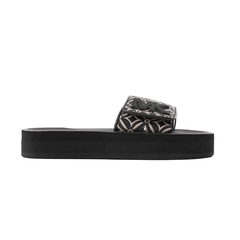 Michael Kors Logo Pattern Wedge Slides Women - BLK
