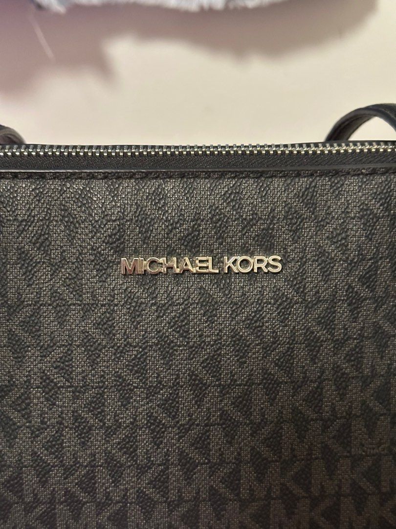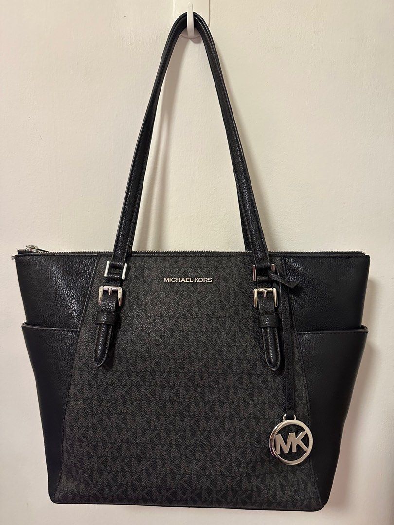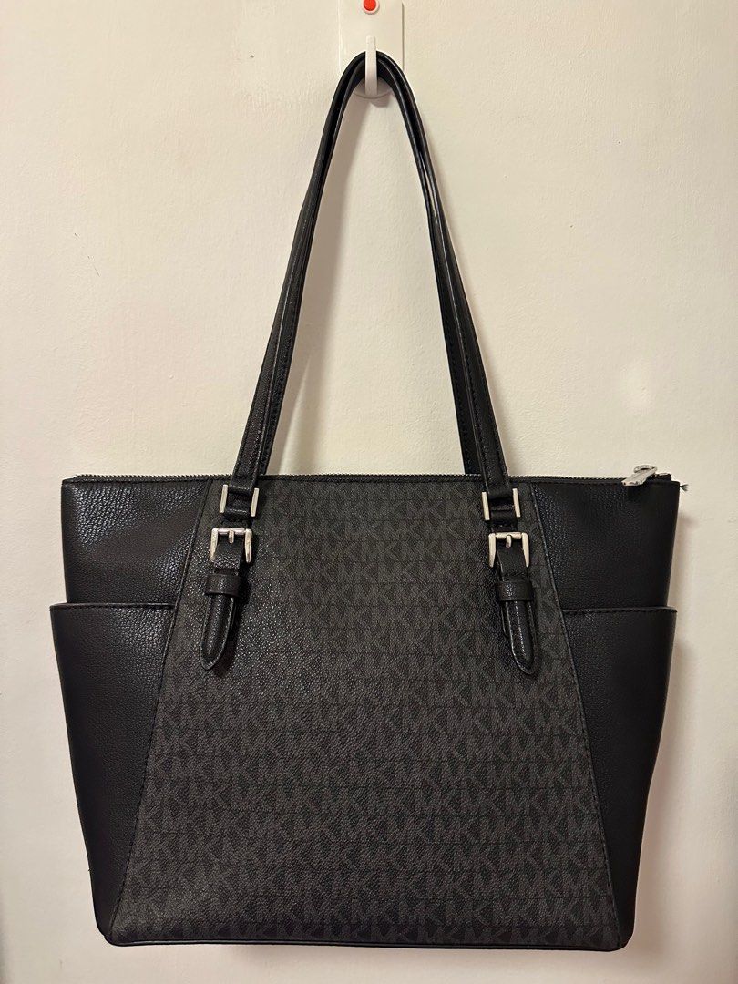 Michael Kors Tote Bag Black Charlotte Signature Large Top Zip Tote