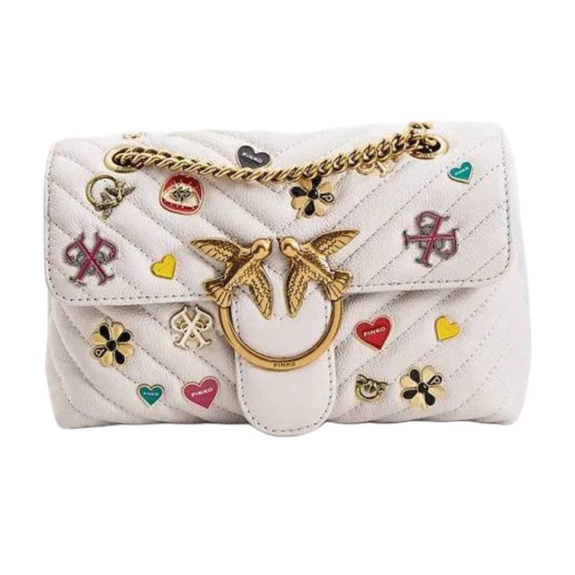 Pinko Mini Love Brooches Quilted Bag in Leather-WHT