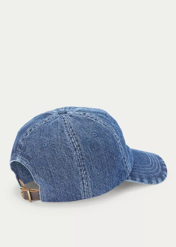 This Polo Ralph Lauren cotton denim blue cap is finished with Ralph Lauren's signature embroidered Polo Bear sporting his finest preppy attire, including a navy blazer. ONE SIZE. Signature embroidered Polo Bear and "Polo" at the front. Seamed bill. Six-panel construction. Embroidered ventilating eyelets. "Polo Ralph Lauren" embroidery and a buckled leather strap at the back. Sweatband at the interior. Approx. 23¼" inner circumference. Imported. Composition: 100% cotton. 100% leather. New with tags. 100% authentic. Final sale. No returns. Please read full item description, check item specifics and see all photos.