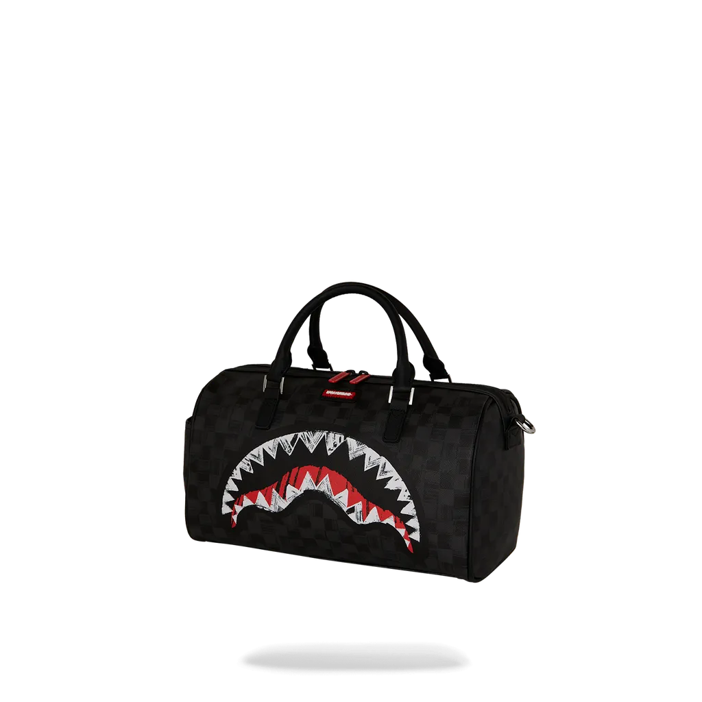 The Sprayground Burnt Sharks In Paris Mini Duffle is a striking, compact accessory that brings intense heat to your daily commute or light travel. The bag features a classic brown and black checkerboard pattern dramatically engulfed in realistic flame graphics, finished with the iconic Sprayground shark mouth detail on the lower corner. Crafted from durable, water-resistant vegan leather, this mini duffle delivers a bold streetwear aesthetic without compromising on everyday utility.