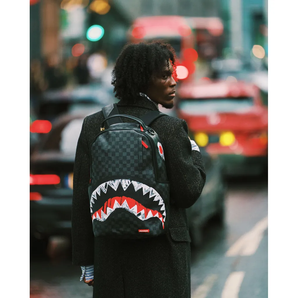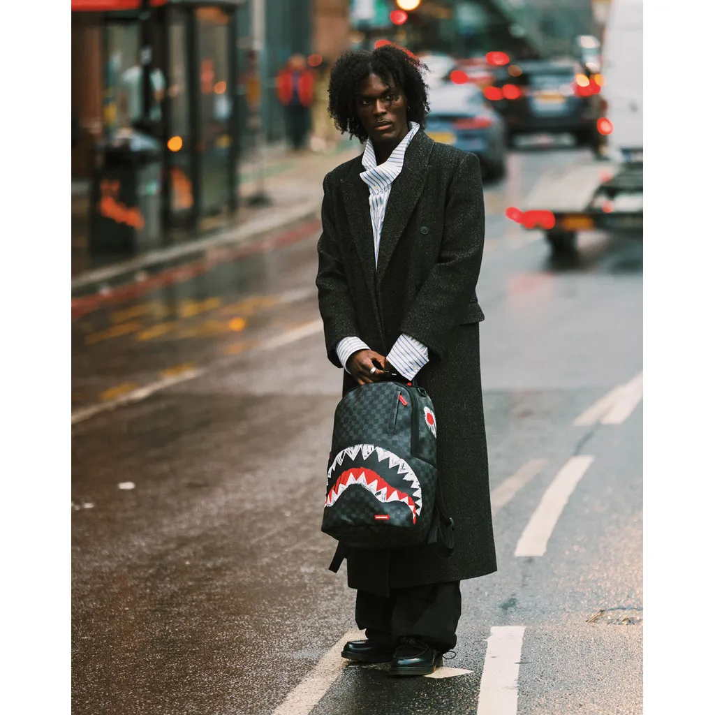 The Sprayground Midnight Shadow Backpack is a masterclass in stealthy, high-fashion utility. Featuring an ultra-sleek, monochromatic black-on-black checkerboard pattern, the design offers a subtle and sophisticated take on the brand’s iconic aesthetic. The signature shark mouth is rendered in a tonal finish, allowing it to blend into the shadows while maintaining its aggressive edge. Crafted from premium water-resistant faux leather, this backpack is the perfect choice for those who demand a professional, low-profile look without sacrificing the bold DNA of street culture.