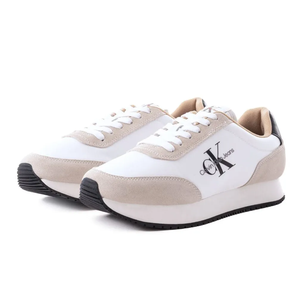 Calvin Klein Jeans Retro Runner SU-NY Mono Trainer – White/Beige/Black