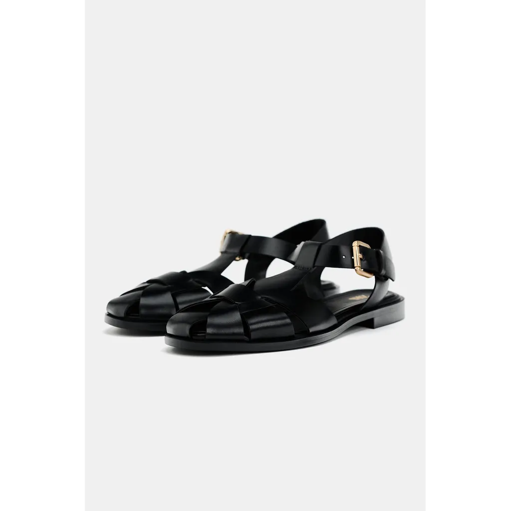 ZARA FLAT CAGE SANDALS – Black