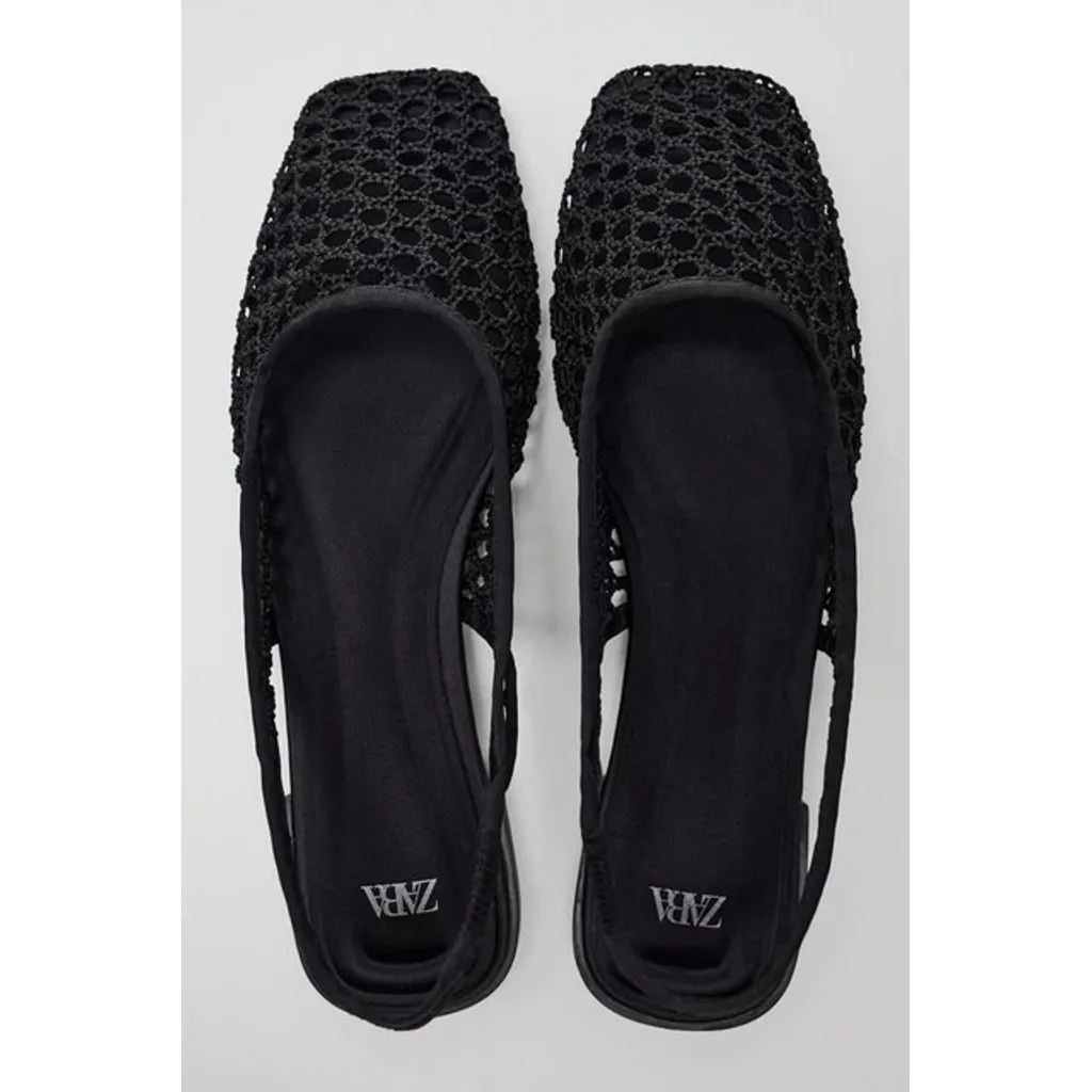 ZARA Black Crochet Pointed Slingback Flats