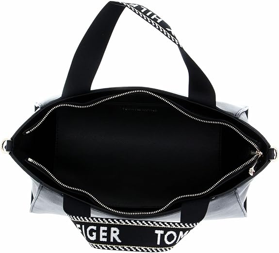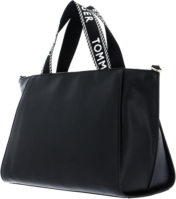 Tommy Hilfiger leather SPACIOUS LOGO STRAP TOTE-BLACK