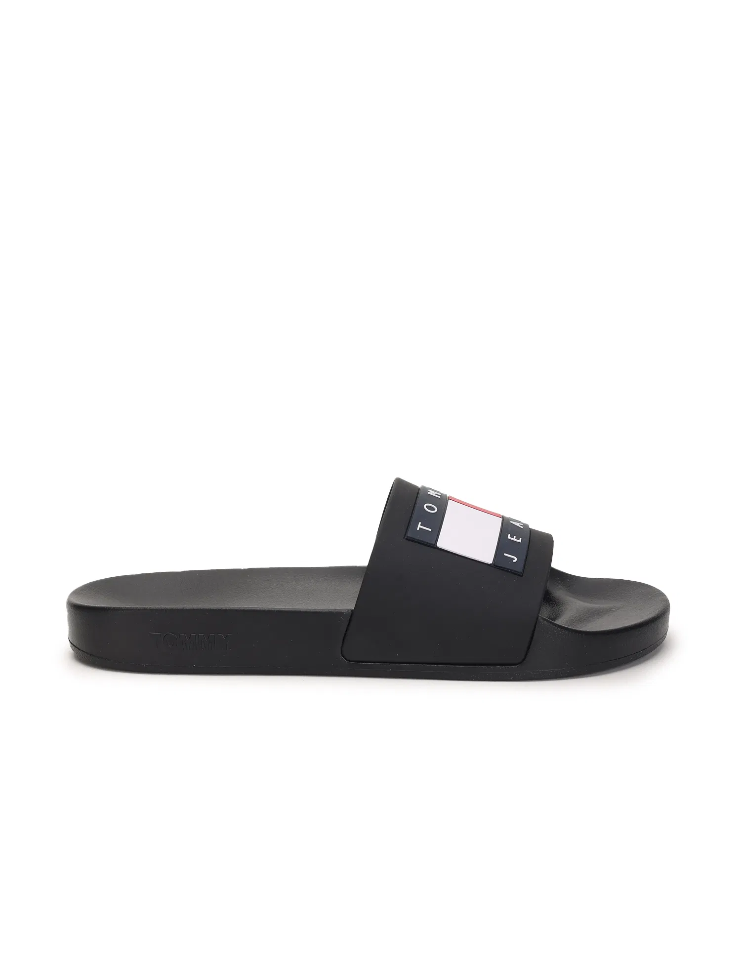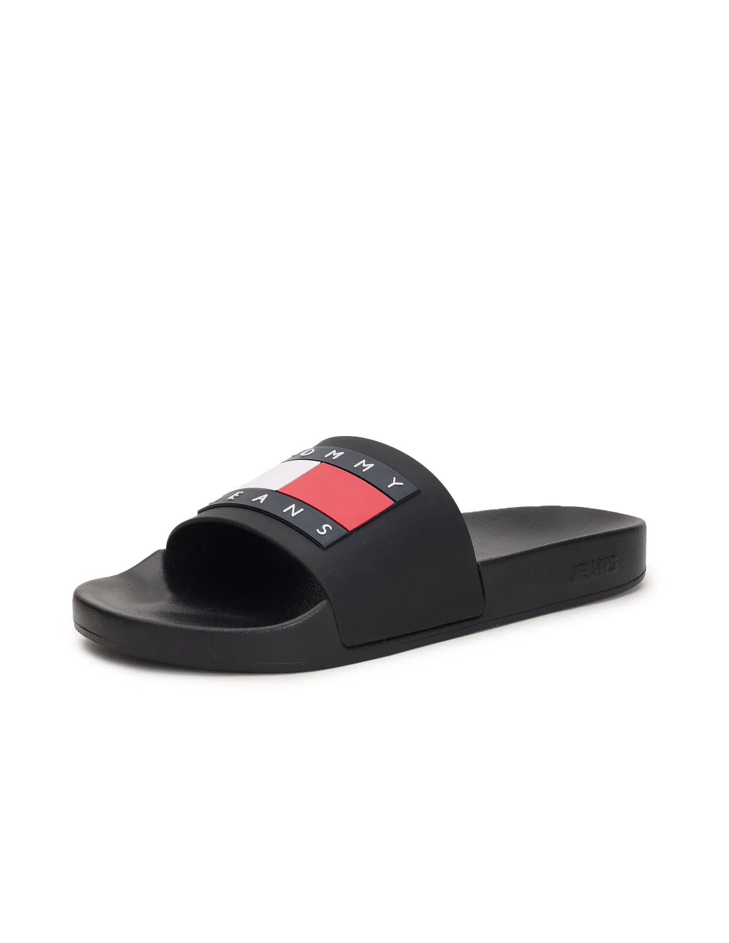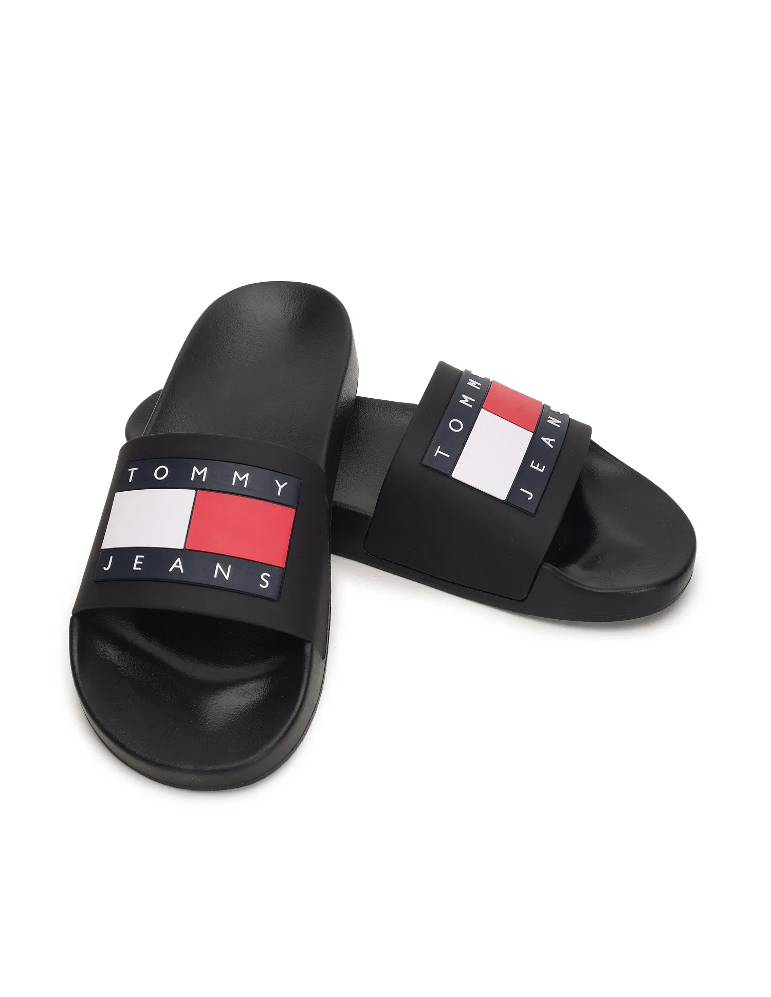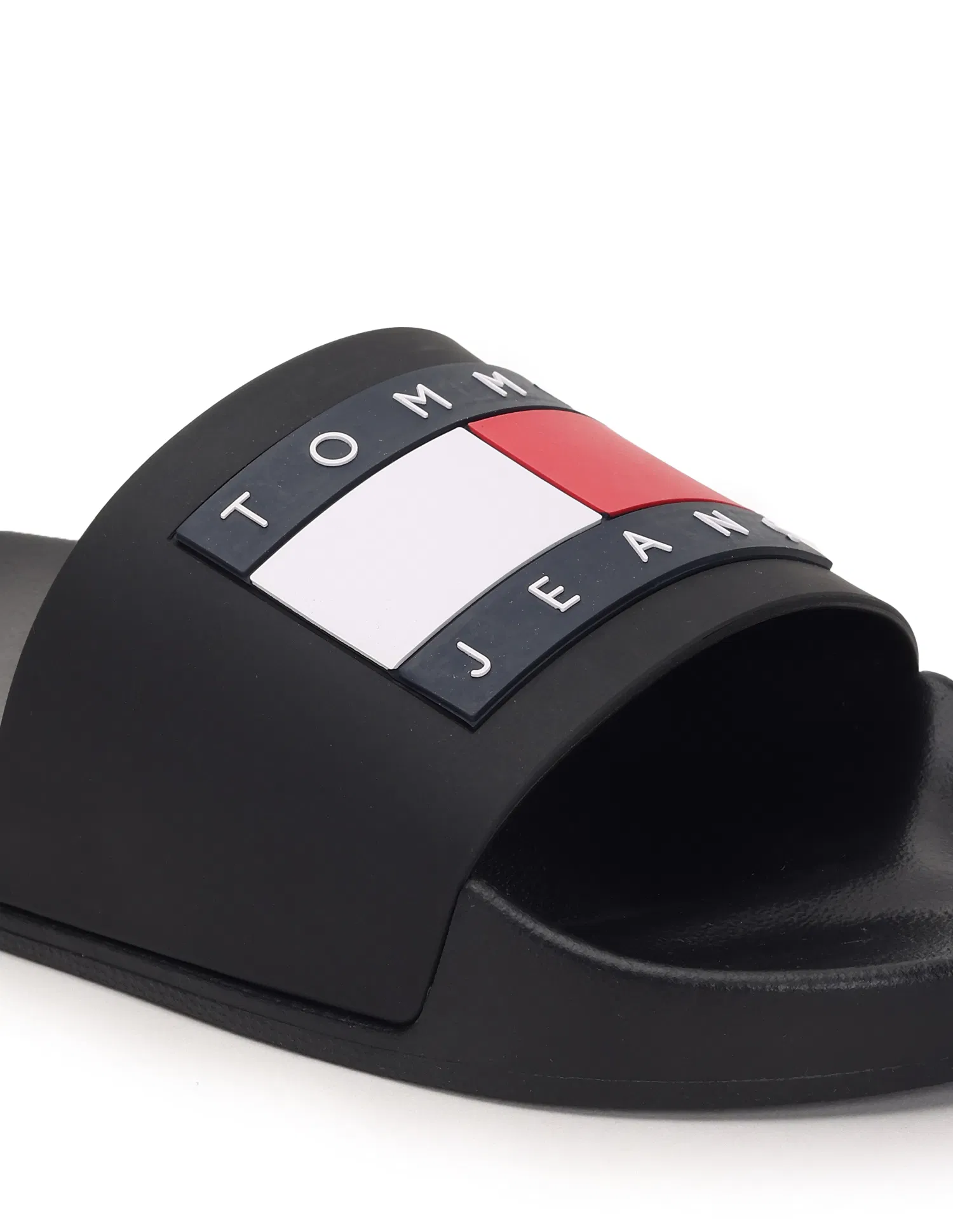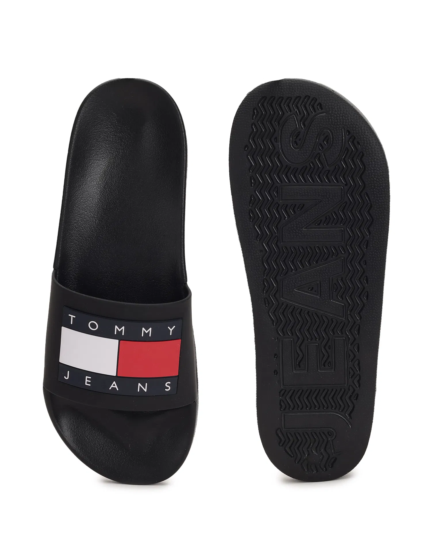 Tommy Hilfiger Men Logo Print Pool Slides-BLK