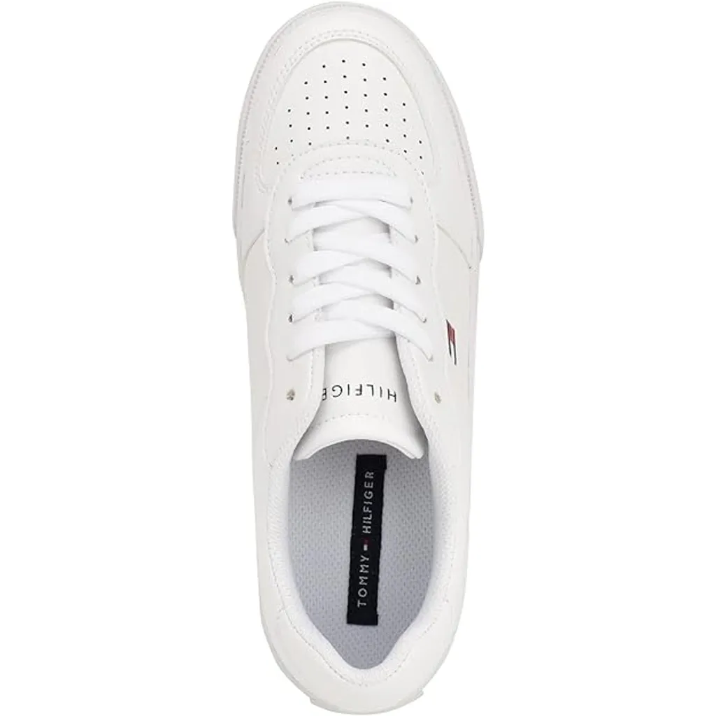 The Tommy Hilfiger Women’s Lelini Sneaker delivers a clean, classic look with a sporty edge. Designed in crisp white with the brand’s iconic flag logo on the side, this lace-up sneaker offers everyday comfort and timeless style. Its low-top silhouette and cushioned sole make it perfect for casual outfits, from jeans to dresses.