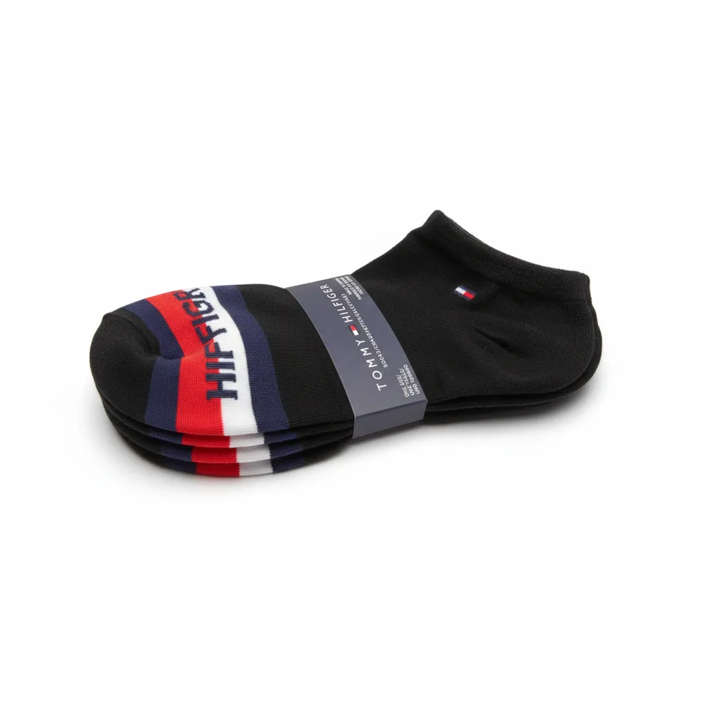 Tommy Premium low-cut socks designed for daily wear and sports comfort. Made with soft breathable cotton to keep feet fresh, with added stretch for a snug fit that moves with you. The comfy base reduces pressure while walking or training, and the reinforced toe seam improves durability for long-lasting use. Finished with classic sporty stripes and the iconic flag logo for a clean premium athletic look. Suitable for gym workouts, running, casual outfits, and all-day wear.