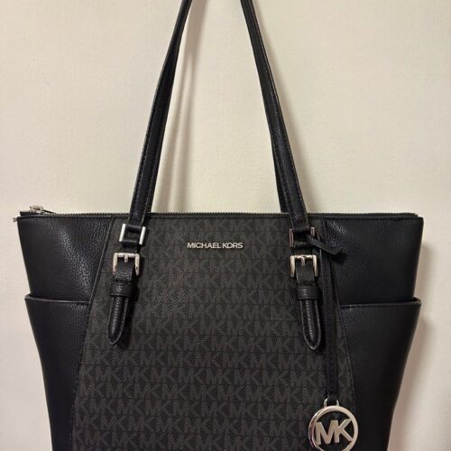 Michael Kors Tote Bag Black Charlotte Signature Large Top Zip Tote